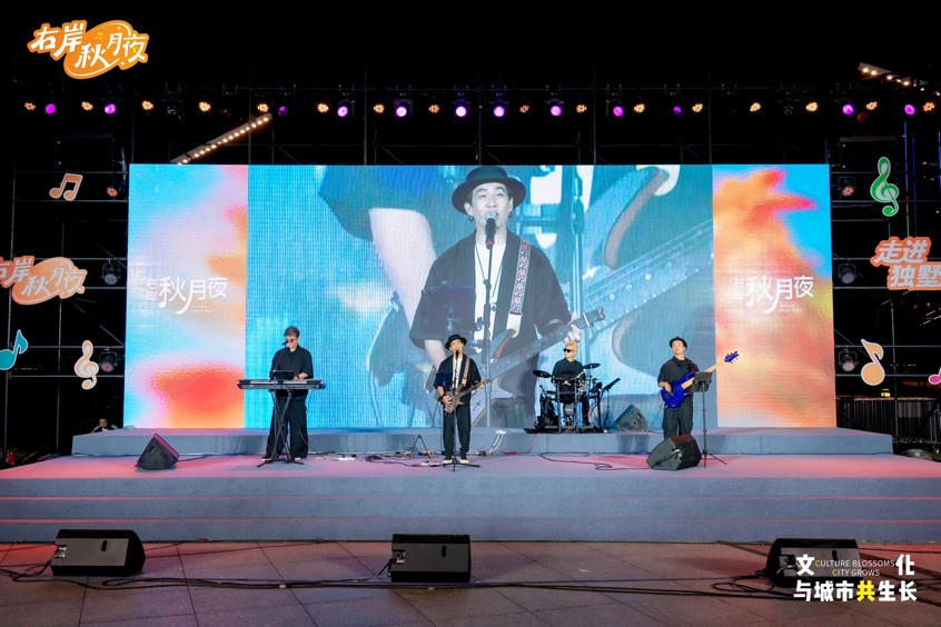 當晚的“右岸秋月夜”歌單,滿是秋的詩意與青春的朝氣,裹挾著蓬勃熱意感染全場。粵語經(jīng)典《紅日》一響,瞬間點燃現(xiàn)場熱情;《戀愛ing》《小情歌》等曲目則以青澀旋律喚起共鳴。流行樂隊、實力唱將、素人歌手輪番登場,帶著對音樂的熱愛為演出注入鮮活能量。一首首經(jīng)典曲目引發(fā)觀眾頻頻揮手合唱,手中的手環(huán)燈光閃爍交織,宛如一片璀璨星海,將獨墅湖的秋夜點綴得格外浪漫。