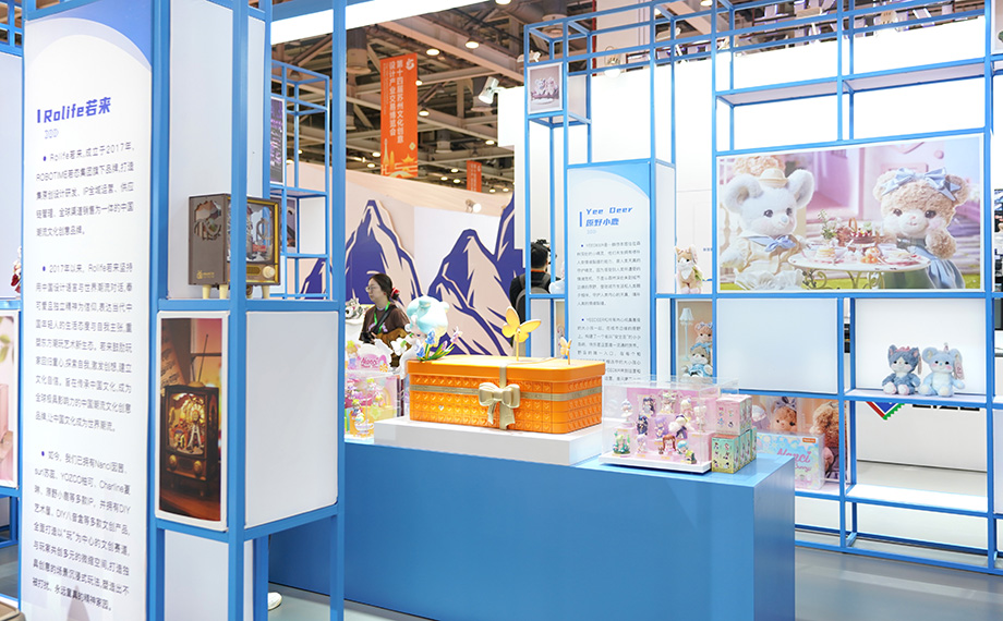 從國潮盲盒到AI玩具,從治愈IP到硬核科技——在園區(qū)展廳內,文創(chuàng)設計的多元面貌正以生動可感的方式集中呈現(xiàn)。若態(tài)科技帶來旗下三大品牌產品線,涵蓋木質拼接玩具、國風盲盒與機械傳動模型。其全新IP“YOZCO柚可”首次線下亮相,肉桂色長發(fā)與小鹿般清澈的眼睛,散發(fā)著溫暖治愈的氣息,吸引不少年輕人駐足拍照。同期展出的“YeeDeer原野小鹿”系列,以“情緒修補小精靈”為設定,進一步傳遞出文創(chuàng)IP在情感連接上的深度探索。
