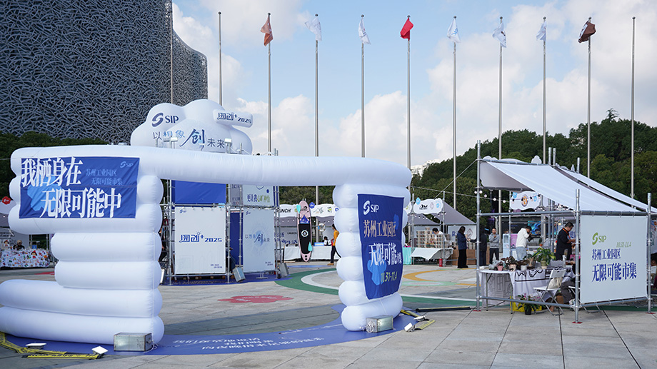 位于蘇州文化藝術中心廣場的蘇州工業(yè)園區(qū)“無限可能文創(chuàng)市集”同樣成為本屆文博會期間的熱門去處。以“我棲身于無限可能中”為主題,市集巧妙運用“五花瓣一花芯”的布局,將25家涵蓋詩歌、文創(chuàng)、寵物、科技與運動的精選商戶有機串聯(lián)。