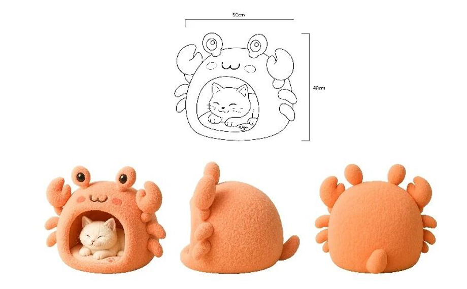 作品以“陽(yáng)澄湖大閘蟹”為靈感,結(jié)合寵物友好主題進(jìn)行設(shè)計(jì)。延伸出一系列包含螃蟹貓窩、水杯、頭盔、寵物碗的設(shè)計(jì),整體造型Q萌。不僅滿足寵物的休憩需求,同時(shí)也呼應(yīng)了環(huán)保與循環(huán)利用理念。