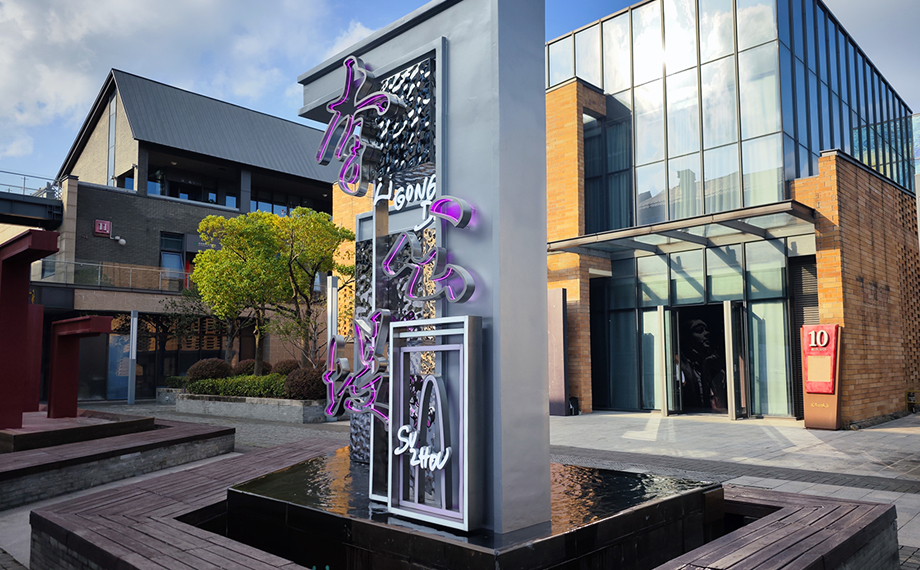設計,鏈接兩國青年;藝術,共鳴中法文明。今年,愛墻創作者、法國藝術家貝隆與中國書法家費之雄、蘇州大學藝術學院教授張大魯聯袂創作裝置藝術作品《凝望》,將文字圖形與波紋不銹鋼相結合,呼應塞納河與金雞湖的水韻,呈現了一場跨越東西方文明的詩意凝望。貝隆表示,創作期間,兩國藝術家克服了距離和語言的差異,通過遠程交流推動作品的和諧統一,最終的實物呈現令人驚喜,這既是藝術家靈感碰撞的心有靈犀,也是中法友誼的活力象征。而他也希望通過文化與藝術的聯接,讓人類的距離拉得更近。