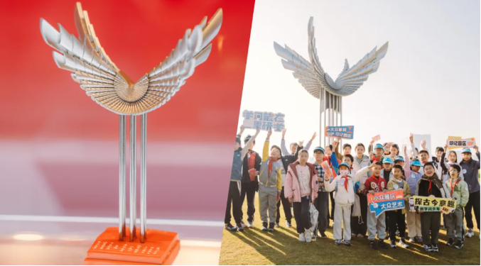 在“飛翔”雕塑下,解讀三十年發展脈絡中“面向未來”的園區精神。