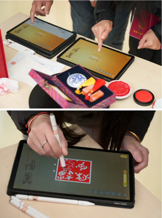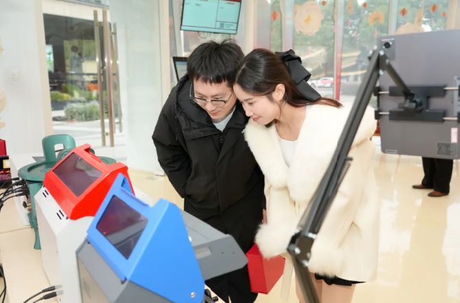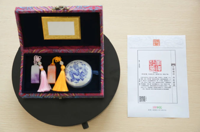 現場洋溢著幸福與儀式感,下午1點活動開始后,前10對完成婚姻登記的新人如約獲贈數字篆刻專屬印章印章由“印記園區印向未來”蘇州工業園區大眾篆刻作品展特別定制,將新人姓名以傳統篆刻藝術數字化呈現,可永久保存、隨時調用。一枚印章,既是愛情的信物,也是新年最獨特的紀念。