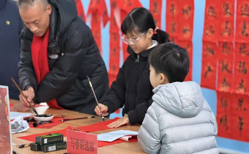 活動室內(nèi),長桌鋪開,墨香陣陣。社區(qū)邀請的書法老師和幾位擅長書法的老黨員揮毫潑墨,為居民現(xiàn)場書寫春聯(lián)和“福”字。一副副寓意美好的對聯(lián),一張張筆力遒勁的“福”字,在筆下流淌而出。居民們圍在一旁,一邊欣賞,一邊挑選著自己心儀的內(nèi)容。“老師,請幫我寫這幅‘平安二字值千金’!”王阿姨拿著墨跡未干的對聯(lián),笑容滿面。紅紙黑字,傳遞的是最傳統(tǒng)也最真摯的新春祝愿。