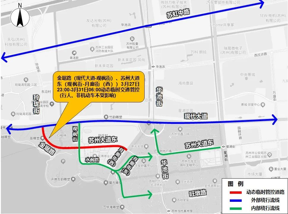 為保障本周(2025年3月28日-30日)蘇州國際博覽中心區(qū)域舉辦大型活動期間道路交通安全有序,根據(jù)《中華人民共和國道路交通安全法》相關(guān)規(guī)定,決定從2025年3月27日23:00至3月31日6:00期間,根據(jù)實際路況及交通管理需要,對蘇州大道東(觀楓街-月廊街(西))、金琚路(觀楓街-現(xiàn)代大道)機(jī)動車道采取動態(tài)交通臨時管控措施。臨時管控期間,禁止機(jī)動車在上述路段通行,非機(jī)動車、行人正常通行,途經(jīng)機(jī)動車可以從玲瓏街、現(xiàn)代大道、水閣路、蘇虹路、華池街、旺墩路等道路繞行。