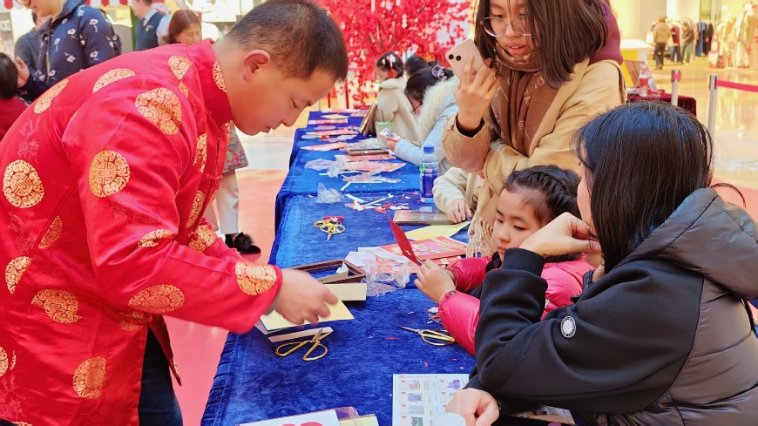 一張紅紙,一把剪刀,剪出濃濃年味。巧手翻飛間,一幅幅寓意吉祥的剪紙作品便躍然紙上。非遺剪紙活動現(xiàn)場,剪紙藝術(shù)大師們現(xiàn)場展示剪紙技藝,并帶領(lǐng)大家剪出各式各樣的窗花、福字,為家中增添喜慶氛圍,傳遞對新年的美好祝愿。