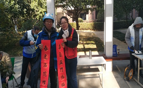 為了向仍然堅守在工作崗位上的新業(yè)態(tài)新就業(yè)群體表達關心與慰問,沁苑社區(qū)黨總支貼心地準備了暖“新”禮包放在活動現(xiàn)場,送給快遞外賣小哥和家政人員。紅色管家志愿者們還特別準備了對聯(lián)和福字,給新業(yè)態(tài)新就業(yè)群體送去新春的祝福。來小區(qū)派件的快遞小哥不僅可以享受理發(fā)、義診、法律咨詢等免費服務,還可以領取一份愛“新”滿滿的暖冬大禮包。