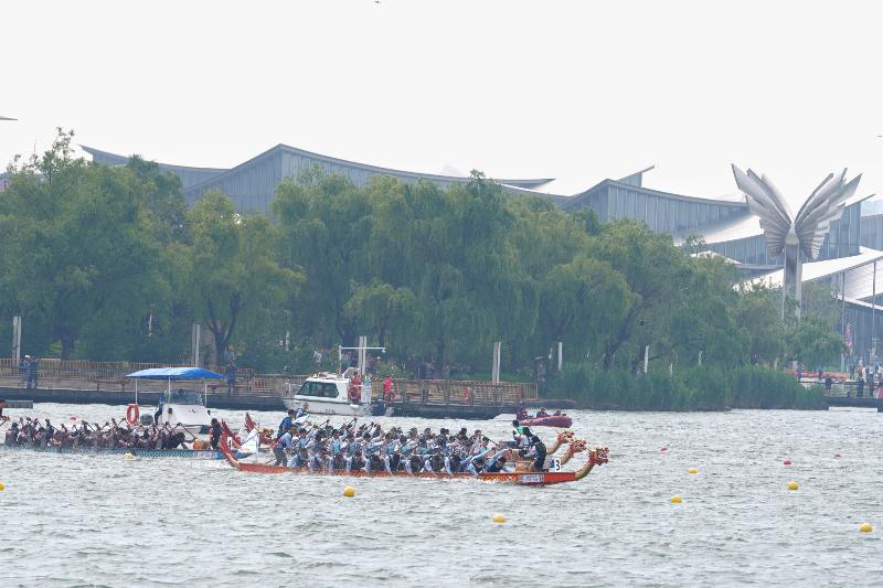 本屆賽事共69支隊伍參賽,總參賽人數1502人,競賽組與邀請組雙線并行,既有專業隊伍的速度與激情,也有國際友人解鎖“龍舟新姿勢”,還有龍舟少年團的熱血登場,“龍舟精神”的多元魅力盡顯。