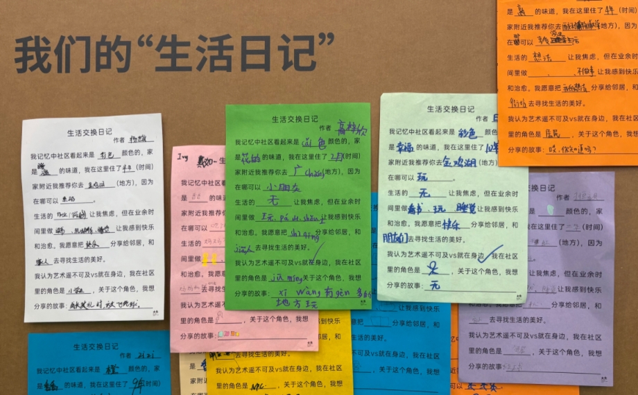 “我記憶中的社區(qū)看起來(lái)是彩色的,家是幸福的味道。”這是展板上一位居民寫(xiě)下的“生活交換日記”。45份生活日記,45種對(duì)于社區(qū)生活的不同見(jiàn)解,正如居民代表史保利提到,“這不僅僅是一場(chǎng)藝術(shù)活動(dòng),更是一次走進(jìn)自己、走進(jìn)鄰里、走進(jìn)社區(qū)的奇妙的旅程。”本次“藝術(shù)畫(huà)像計(jì)劃”突破舊有場(chǎng)館界限,深入社區(qū)肌理,成為每一個(gè)普通人參與公眾表達(dá)的媒介,讓居民們從“被看見(jiàn)”中獲得歸屬感,從日常分享中產(chǎn)生共鳴,真正發(fā)自內(nèi)心的認(rèn)同“藝術(shù)就在身邊”。
