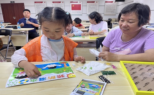 在活動(dòng)室內(nèi),孩子們專注地將五彩斑斕的紐扣粘貼在畫(huà)板上,拼貼出救生圈、安全警示牌等防溺水主題圖案。每一粒紐扣的鑲嵌,都是安全知識(shí)在指尖的傳遞與深化。畫(huà)作完成后,孩子們紛紛走上小講臺(tái),自信滿滿地分享自己精心準(zhǔn)備的防溺水小故事。稚嫩而認(rèn)真的童聲講述著河湖暗藏的危險(xiǎn)與自救互救的智慧,讓“珍愛(ài)生命,謹(jǐn)防溺水”的警鐘在每一位參與者心中清晰回響。