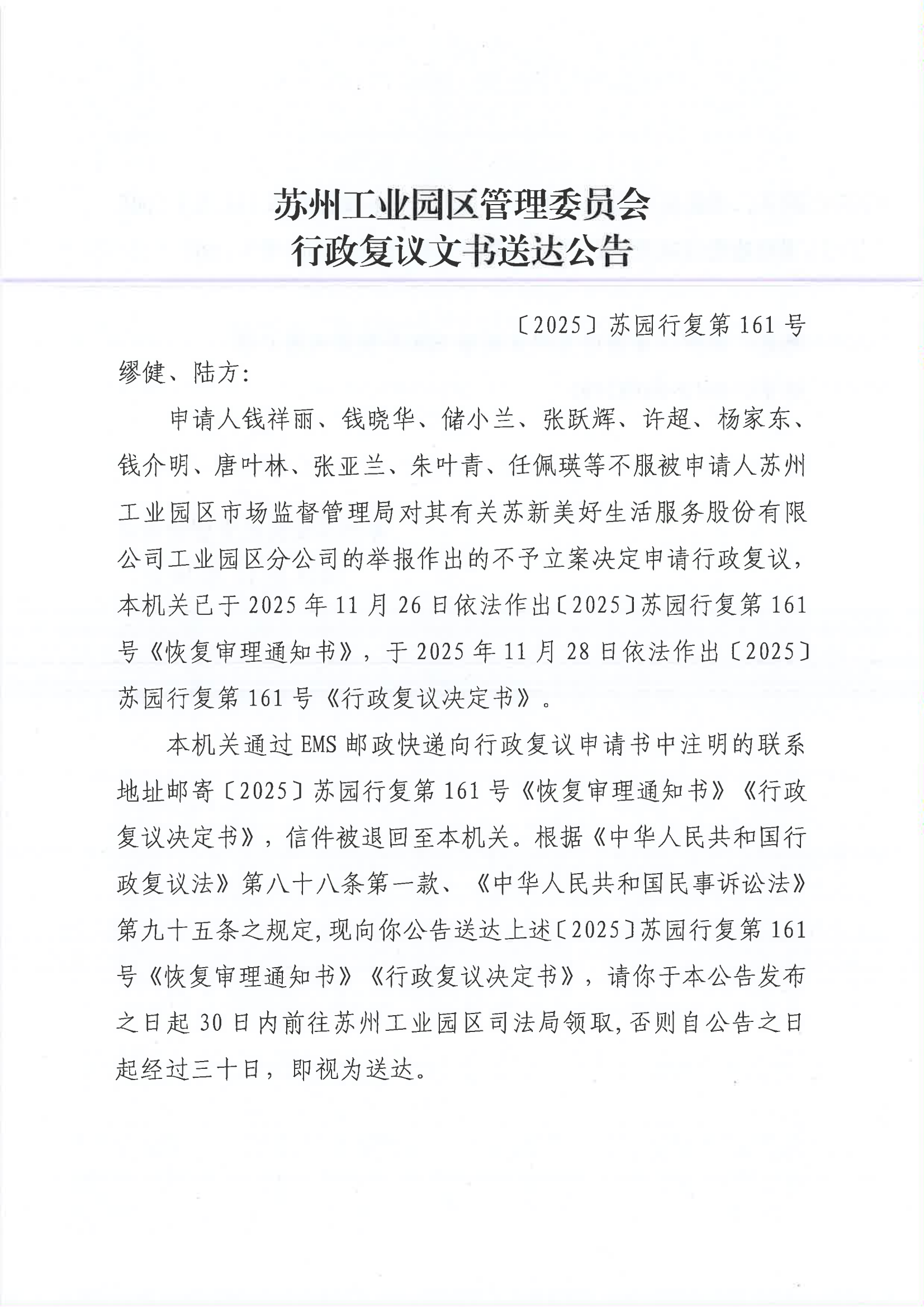 行政復議文書送達公告