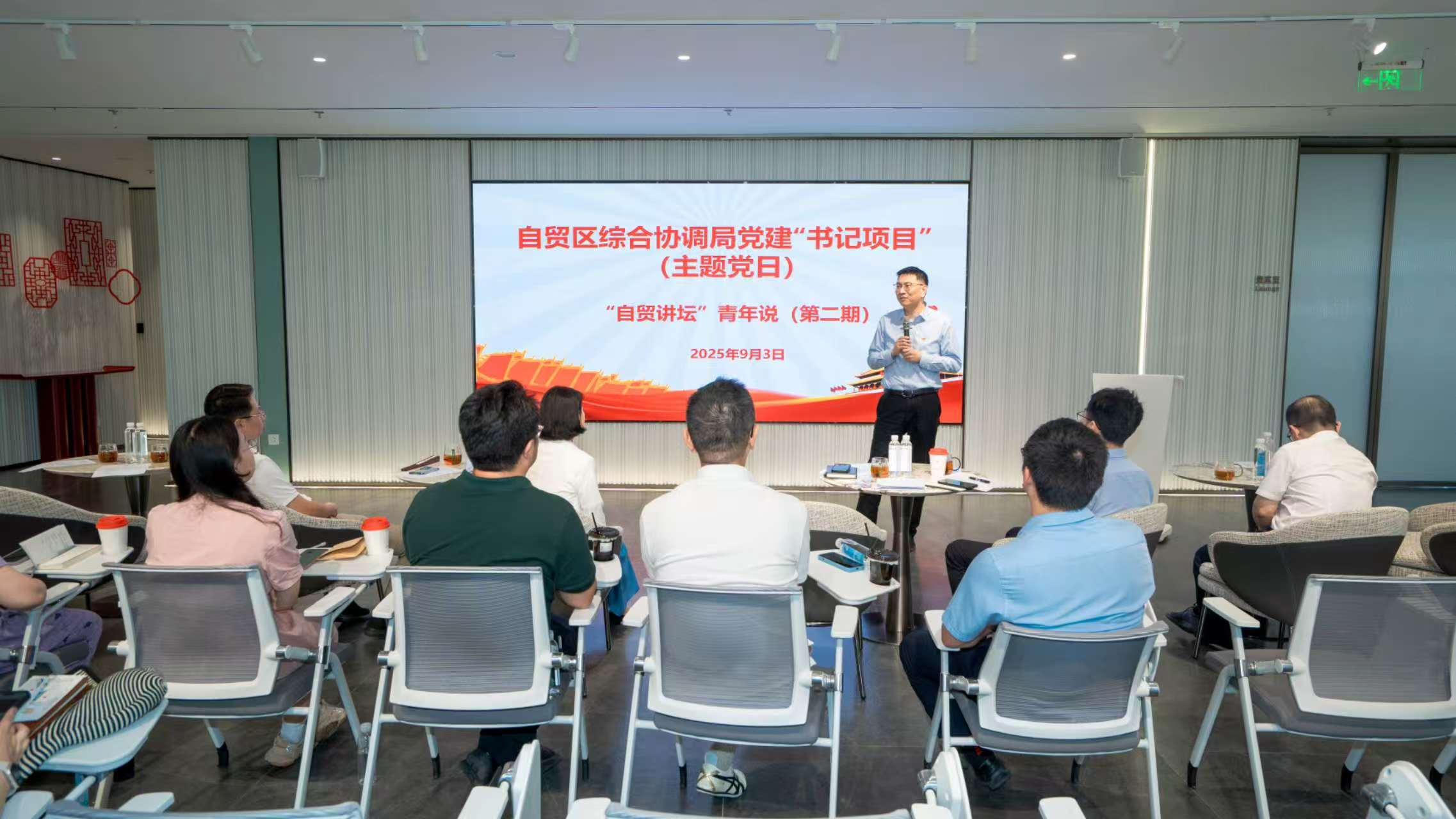 為進(jìn)一步發(fā)揮青年干部對(duì)自貿(mào)區(qū)發(fā)展的積極作用,9月3日,自貿(mào)區(qū)綜合協(xié)調(diào)局黨支部舉辦黨建“書記項(xiàng)目”——“自貿(mào)講壇”青年說第二期特別活動(dòng)。活動(dòng)以“我為自貿(mào)做貢獻(xiàn)”為主題,為青年干部搭建展示才華、交流互鑒的平臺(tái),展現(xiàn)其在片區(qū)建設(shè)一線的創(chuàng)新實(shí)踐與思考感悟。工委組織部、自貿(mào)區(qū)綜合協(xié)調(diào)局黨支部成員參加活動(dòng)。
