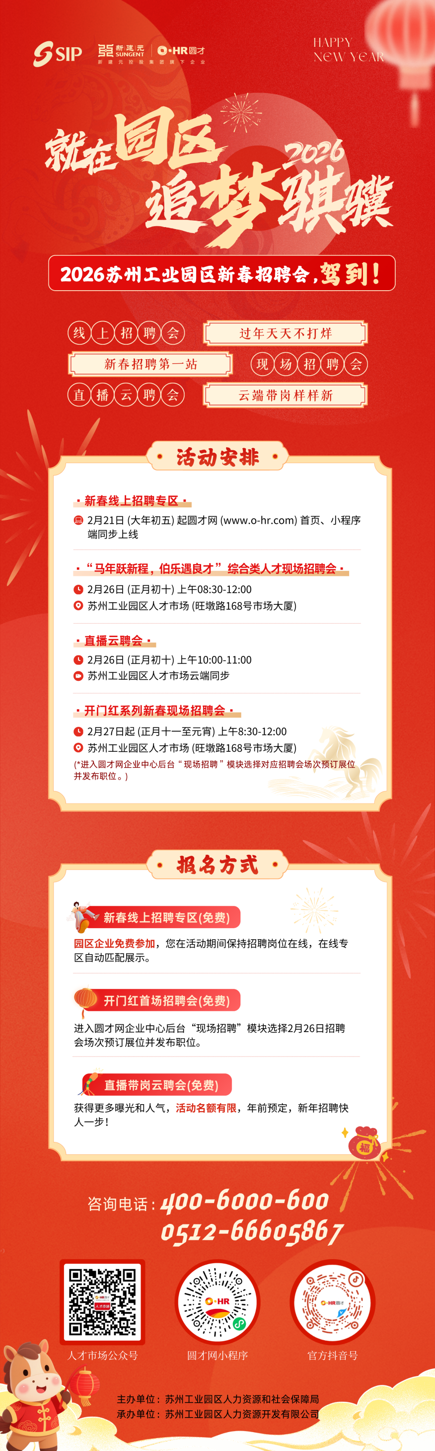 事實上,針對春節前后招工引才“黃金期”,園區從大年初五至正月十五持續推出“就在園區,追夢騏驥”新春招聘系列活動,活動包含5場線上招聘會、5場線下招聘會以及2場直播帶崗云聘會,為企業提供免費招聘服務;至3月底,還將聯動區人力資源市場及各街道開展“春風行動”,密集組織線上線下主題招聘活動45場,全力保障企業節后快速復產達效,實現線上線下全覆蓋、節前穩崗與節后復工的全程銜接。