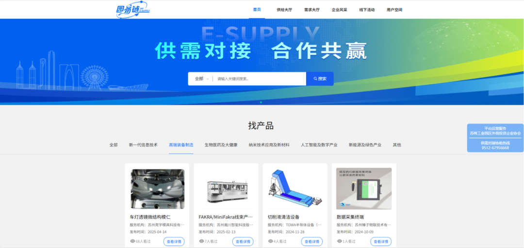 平臺整合線上線下服務(wù)資源,搭建政府、國資、協(xié)會多方協(xié)同聯(lián)動的供需對接體系。截至2025年,園區(qū)累計認定“623”產(chǎn)業(yè)體系鏈主企業(yè)、重點企業(yè)500余家,專精特新“小巨人”企業(yè)220家;“園易鏈”平臺線上展示企業(yè)風(fēng)采1000余家、發(fā)布供需信息1100余條;線下舉辦供需對接活動100余場,累計服務(wù)企業(yè)超2400余家次;持續(xù)打造龍頭企業(yè)引領(lǐng)、中小企業(yè)配套、內(nèi)外資企業(yè)融通發(fā)展的產(chǎn)業(yè)共生格局。