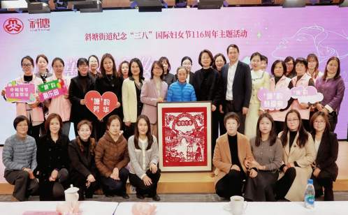 活動中,來自轄區科創企業、社會組織和基層治理等不同領域的女性代表分享奮斗故事,彰顯新時代女性的最美芳華;“文薈家塾?啟明讀書”家庭教育項目典型案例圓桌分享溫情開講,讓大家感受閱讀賦能家庭教育的溫暖力量。非遺剪紙技藝傳承人封引風精心創作了婦女節主題剪紙作品《塘韻芳華》,作品以水鄉、荷花和織錦為特色場景,生動展現斜塘女性卓然的精神風貌。