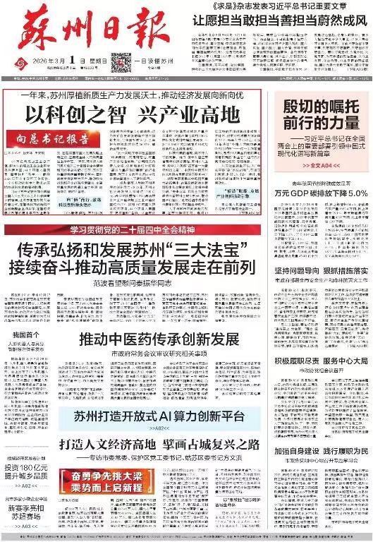 《蘇州日報》2026年03月01日A01版