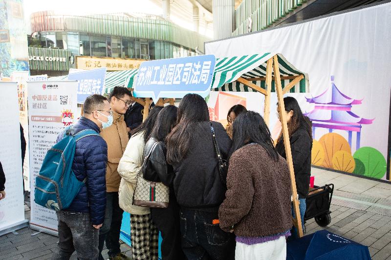 園區司法局聯合園區海關、金雞湖街道等在圓融時代廣場舉辦“憲在身邊 法潤金雞”法治市集,開啟憲法宣傳周系列活動序幕?,F場設置10個普法攤位,吸引近230名群眾參與,通過憲法知識問答、法律咨詢解答、案例解讀、游戲互動等形式宣傳憲法、反詐防非、掃黑除惡等法律知識,并提供暖心熱飲和法治手作,實現“普法宣傳+惠民服務”零距離。積極響應市局“弘揚憲法精神,堅定法治信仰”主題活動,在獅山大劇院設置“法潤園區·聚力前行”普法攤位,提供的法治帆布袋、文創冰箱貼等法治產品備受歡迎。