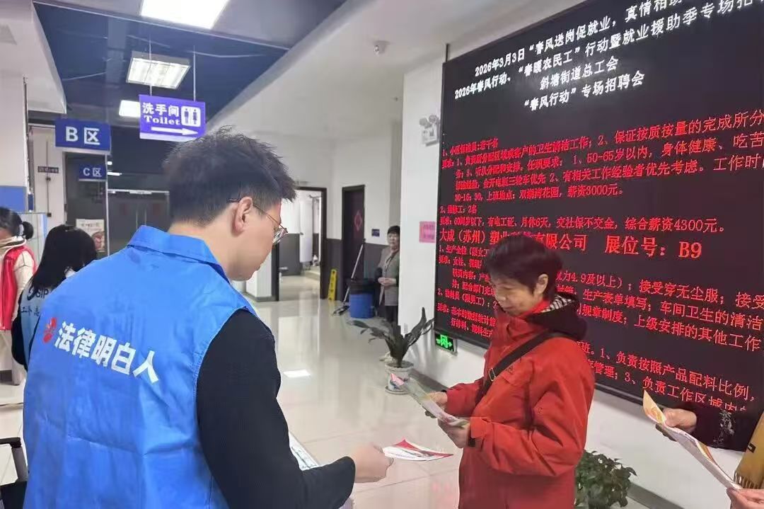 為深入貫徹黨的二十大和二十屆歷次全會精神,全面貫徹習近平法治思想,切實維護農民工、婦女及廣大消費者的合法權益,斜塘街道司法所聚焦不同群體法律需求,開展了一系列有溫度、有深度的“春風行動”,讓法治春風吹進千家萬戶。