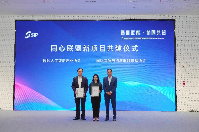 活動中,園區工商聯(總商會)分別與園區市場監督管理局、園區海關共建發布“市監護航”“外貿護航”服務品牌,與園區人工智能產業協會、園區資源節約與能源管理協會共建成立“AI產業創新聯盟”“節能降碳聯盟”,通過不斷壯大“四大同心”品牌矩陣,持續優化市場化、法治化、國際化營商環境,進一步提升企業核心競爭力。