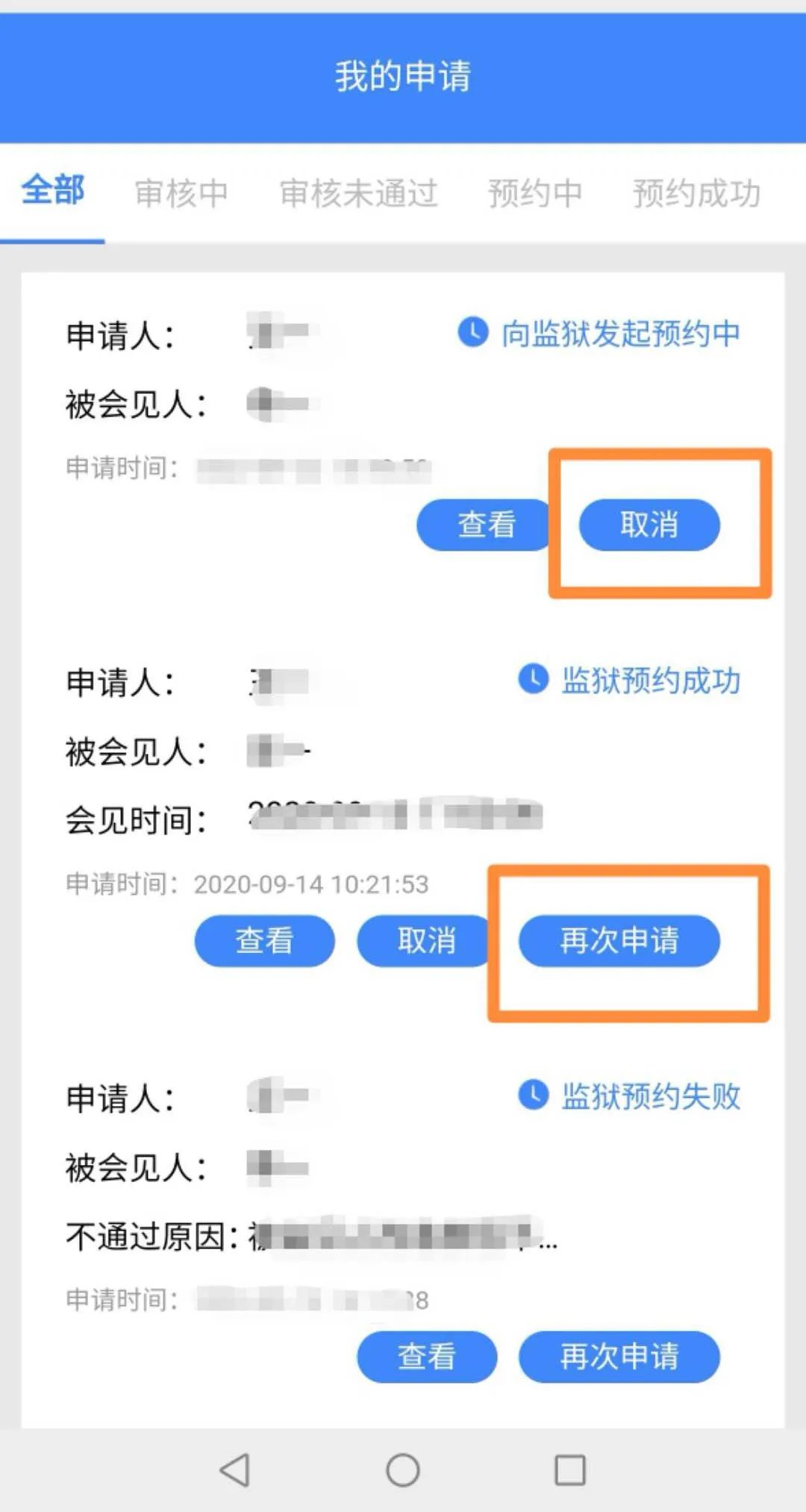 2.已安排視頻會見的,當(dāng)月就不能同時再到監(jiān)獄實(shí)地會見,特殊情況除外。已到監(jiān)獄實(shí)地會見過的,當(dāng)月不能在手機(jī)端發(fā)起預(yù)約申請。