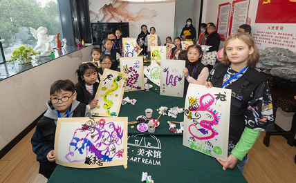 In Dulwich College Suzhou, a school for children of expats, the students watched dragon and lion dancing performances, and tried to write Chinese character “Fu” (meaning happiness and luck) and make handiworks that could be used as decorations during the festival.
