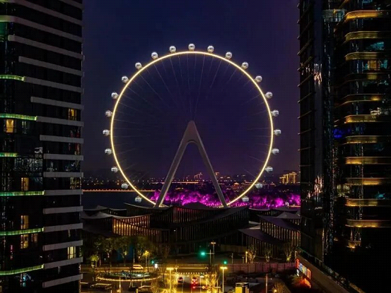 At dusk, when Jinji Lake is the most enchanting, enjoy a panoramic view of the lake mirroring the orange-pink skies in the Ferris wheel’s capsule gilded with the golden sunbeams.