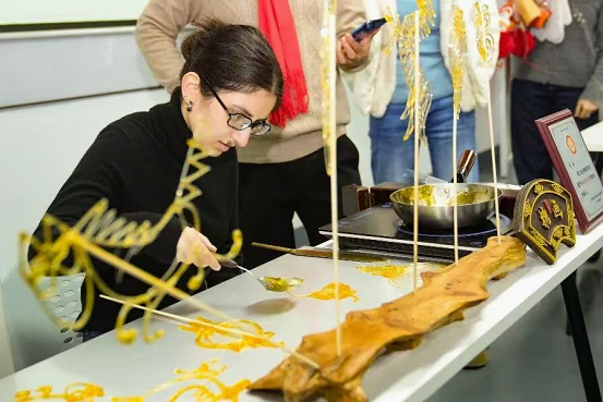 At the Suzhou Industrial Park One-stop Service Centre for Expats, 20 international students experienced sugar painting, a craft recognized as an intangible cultural heritage element. Guided by Li Yao, an expert in this craft, they created auspicious motifs like horses and lanterns using hot sugar.