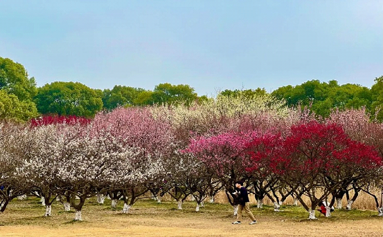 Parks like Baitang Arboretum and Dongsha Lake Park have become popular destinations, where visitors can immerse themselves in the clouds of pink flowers and lingering fragrance. The delicate yellow wintersweet flowers add vitality to the chilly air with its refreshing scent.