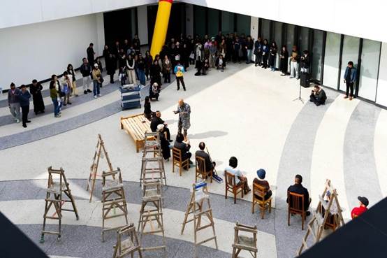 The artist also gave a lecture on site, leading the audiences into a collective artistic exploration of “identity” through physical expression, material application, and improvisational responses.