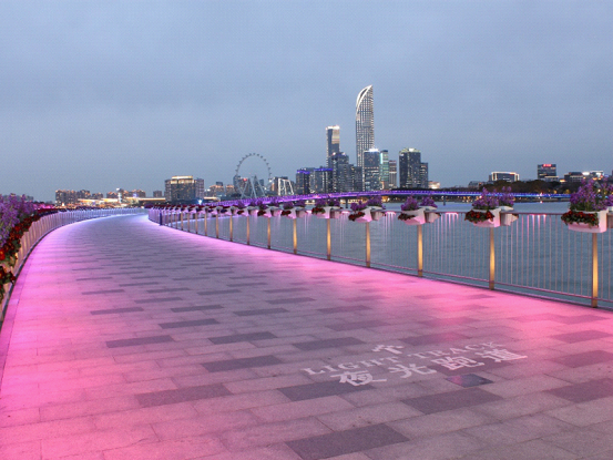 The Jinji Lake Light Track, extending along Jinji Lake, is one of SIP’s major urban renewal projects in 2024. This project focuses on upgrading the lighting facilities and control system of an overwater trestle bridge and several waterside pathways to create a continuous 15-kilometer intelligent lakeside running route and a 3.5-kilometer interactive “l(fā)ight-chasing” running path.