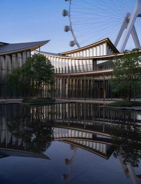 Seen from above, the ribbon-like roof winds and flows, ingeniously connecting nine independent pavilions. The stainless-steel surface of the roof and the curved vertical glass facades resemble the glazed tiles of traditional Chinese architecture. As visitors stroll through the museum, they find themselves transitioning between interior and exterior spaces, with the scenery changing at every step.