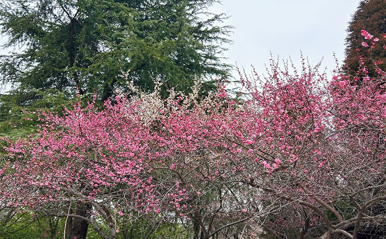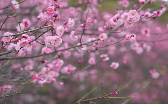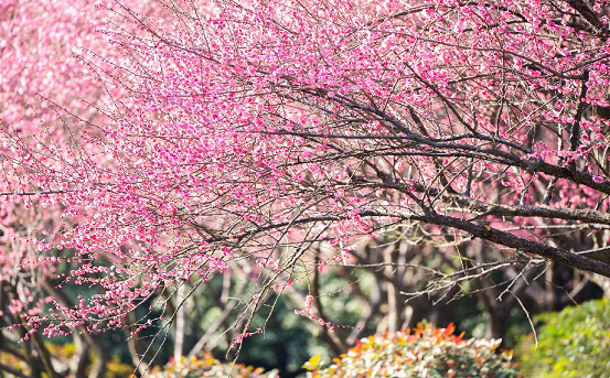 Parks like Baitang Arboretum and Dongsha Lake Park have become popular destinations, where visitors can immerse themselves in the clouds of pink flowers and lingering fragrance. The delicate yellow wintersweet flowers add vitality to the chilly air with its refreshing scent.