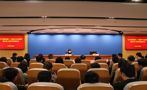 12月4日下午,蘇州工業園區高端制造與國際貿易區組織召開學習貫徹黨的二十屆四中全會精神園區黨工委宣講團報告會。
