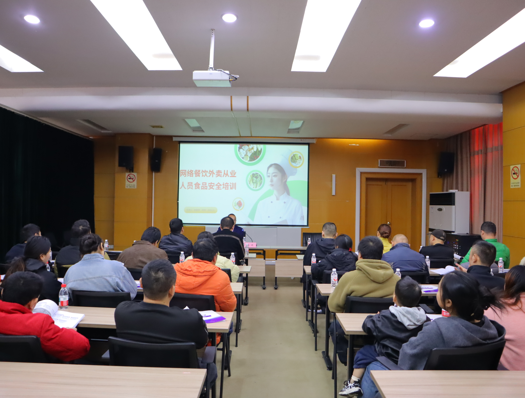 培訓緊扣網絡餐飲服務痛點,圍繞“常見問題、行業風險、操作規范”三大核心展開。主講人系統梳理了外賣訂單處理、食品加工中的高頻隱患,深入剖析了“即時配送”“無接觸服務”等外賣行業特性帶來的溫度控制、包裝密封等特殊風險;重點講解了食材清洗、生熟分儲、加工溫度等加工操作規范,以及從業人員健康管理、個人衛生“五必須”(如工作衣帽規范穿戴、操作前規范洗手消毒等)等衛生要求?,F場還結合“食材過期未檢出”“加工區衛生不達標”等典型案例,直觀展示違規操作后果,并邀請商戶代表分享實踐經驗,讓規范要求更“接地氣”。