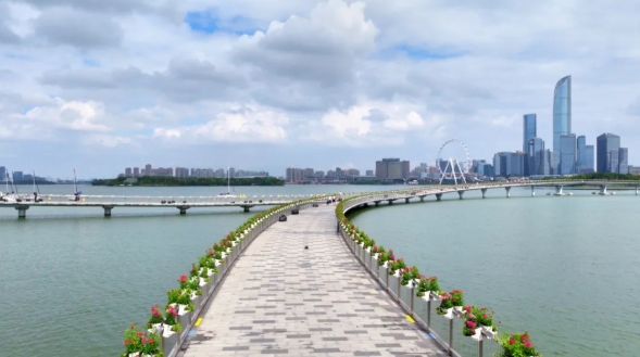 同時,在園區(qū)主干道、景觀棧橋等重點公共空間有序開展花卉布置,依托簡潔、大氣的塊狀與環(huán)狀設計語言,強化視覺秩序和節(jié)日儀式感。以紫、玫紅、黃等暖色調(diào)形成連續(xù)、飽滿的色帶效果,有效烘托熱烈祥和、團結喜慶的節(jié)日氛圍。