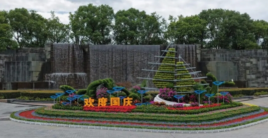 一座以“揚帆逐浪,生態(tài)和諧”為理念打造的國慶主題綠雕在國賓路路口正式落成。該景觀以浪花、船帆為造型主體,搭配游魚、飛鳥等自然元素,生動傳遞出園區(qū)勇立潮頭、奮發(fā)進取的精神風貌。綠雕基座部分綜合運用近3萬盆時令花卉與精品苗木,包括一串紅、矮牽牛、鼠尾草、歐月、向日葵等多個品種,通過科學配植與藝術構圖,形成色彩鮮明、層次豐富的花海浪濤意象,進一步提升核心區(qū)域景觀品質(zhì)。
