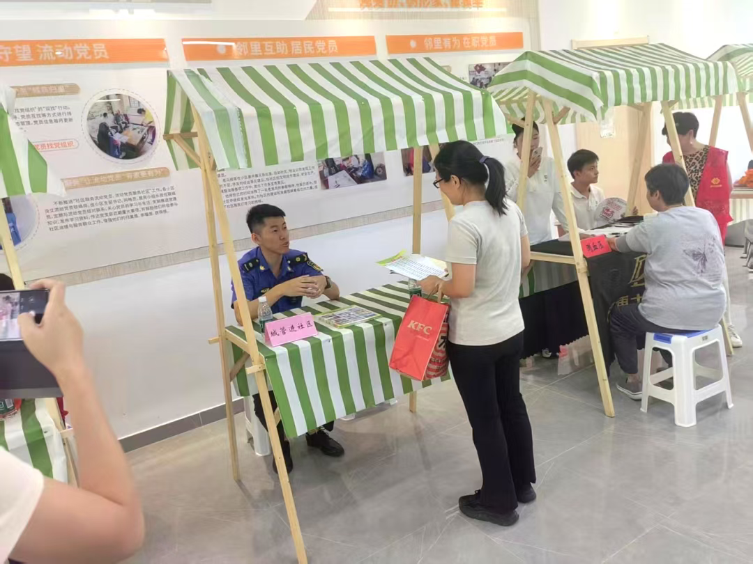 曾經(jīng),城管執(zhí)法隊員在居民印象中總是坐在執(zhí)法車?yán)?,或是隊列巡查的形象。如今在青春家園社區(qū),他們每月都會在黨群服務(wù)中心的居民服務(wù)市集“擺攤設(shè)點”,面對面為居民解答疑問。