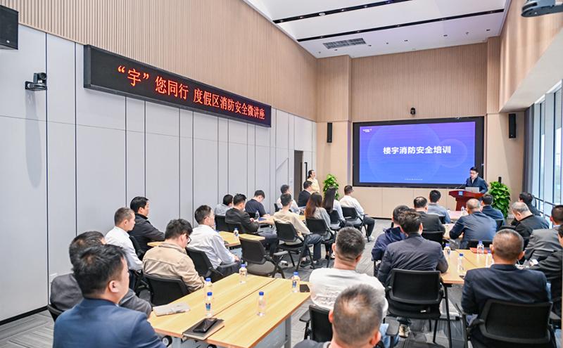 高層樓宇內部結構復雜,周邊各類業態聚集,如果出現火災等安全事故難以快速有效控制,極易導致嚴重的經濟損失,甚至造成人員傷亡。為加強高層樓宇安全工作,提高相關人員安全意識,近日,蘇州陽澄湖半島旅游度假區圍繞“全民消防,生命至上”主題,瞄準樓宇安全“切口”,聯合中建六局裝飾工程有限公司,在恒泰理想創新大廈開展了“宇”您同行——高層樓宇消防安全微講座活動。中新科技創業大廈、理想創新大廈、展業大廈等20家安全管理相關負責人,以及15名度假區樓宇安全網格員參加活動。