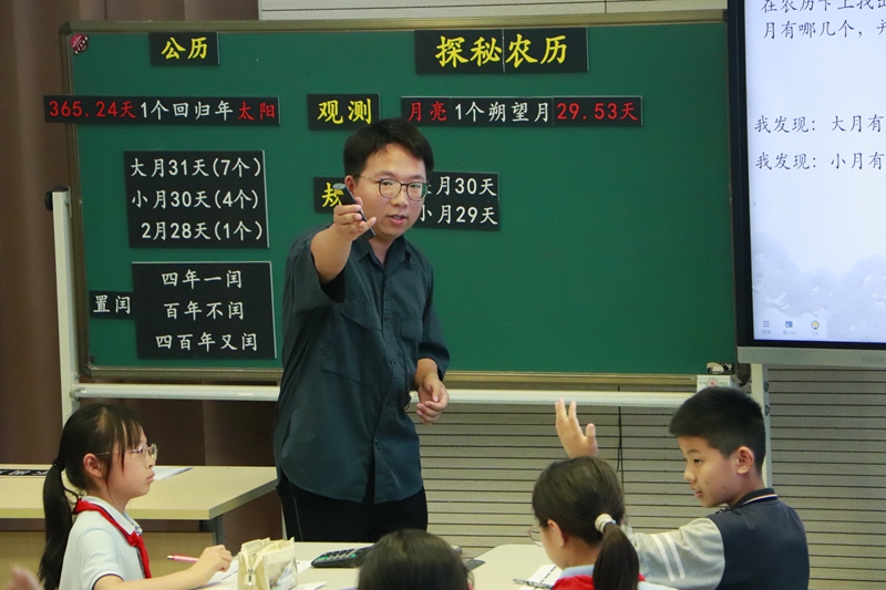 青劍湖小學陳柯老師執教的《探秘農歷》數學與科學相融合,引導學生遷移公歷學習的經驗,以數學視角探索農歷的形成讓學生在感受中華傳統文化獨特魅力的同時,深化了對數學知識的理解與運用。