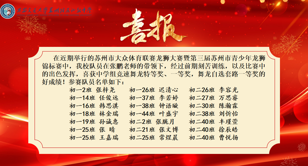 每一次騰躍,都是日夜打磨的回響。接到比賽通知后,龍獅隊的同學(xué)們利用放學(xué)后的課余時間加緊備戰(zhàn),從基礎(chǔ)動作打磨到套路細(xì)節(jié)優(yōu)化,從器材檢查維護(hù)到團(tuán)隊默契培養(yǎng),每一個環(huán)節(jié)都精益求精。雖然天氣嚴(yán)寒、訓(xùn)練條件有限,但在張鵬老師的悉心指導(dǎo)與帶領(lǐng)下,隊員們克服體能與技術(shù)雙重挑戰(zhàn),始終以飽滿的熱情投入訓(xùn)練,用汗水澆灌出勝利的果實。作為曾在蘇州市首屆、第二屆龍獅賽事中屢獲佳績的優(yōu)秀隊伍,西附初中龍獅隊此次再度登頂,彰顯了學(xué)校在非遺文化傳承與素質(zhì)教育融合方面的顯著成效。