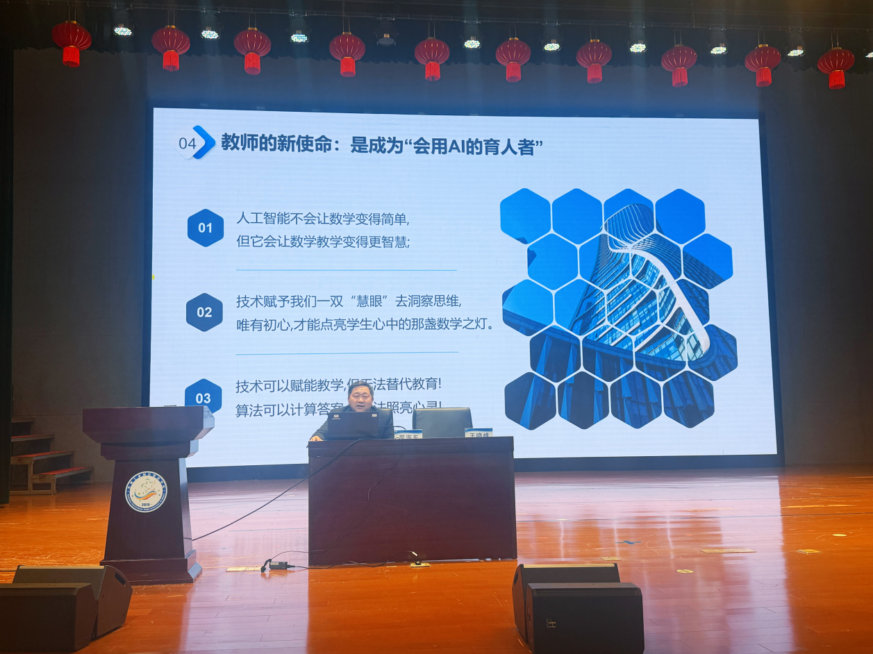 蘇州工業園區教師發展中心初中數學教研員、正高級教師、特級教師王曉峰老師指出,當前正處于傳統教育向現代教育轉型的關鍵時期,其重要標志在于信息技術,尤其是人工智能在教育領域的廣泛深入應用。他強調,數智賦能已成為社會及教育發展的必然趨勢與重要路徑,青年教師應主動把握機遇,著力打造屬于自己的“新高鐵”,以數智技術驅動教學創新,實現從經驗型教學向數據驅動、人機協同的現代化教學范式轉型,為區域數學教育高質量發展注入新動能。