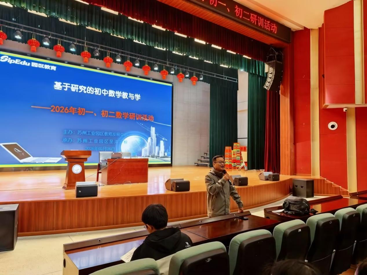 為助力教師教學能力進階、構筑高效優質課堂、強化育人綜合素養,在科技浪潮推動教育變革的大背景下,AI賦能教育的理念正深度融入教學實踐。2026年3月26日,蘇州工業園區“基于研究的初中數學教與學——2026年初一、初二數學研訓活動”在蘇州工業園區星洋學校舉行。本次活動分為課堂展示、教學研討、專題講座等環節,六位優秀教師各展教學風采,呈現出一堂堂內容生動、精彩紛呈的課程。