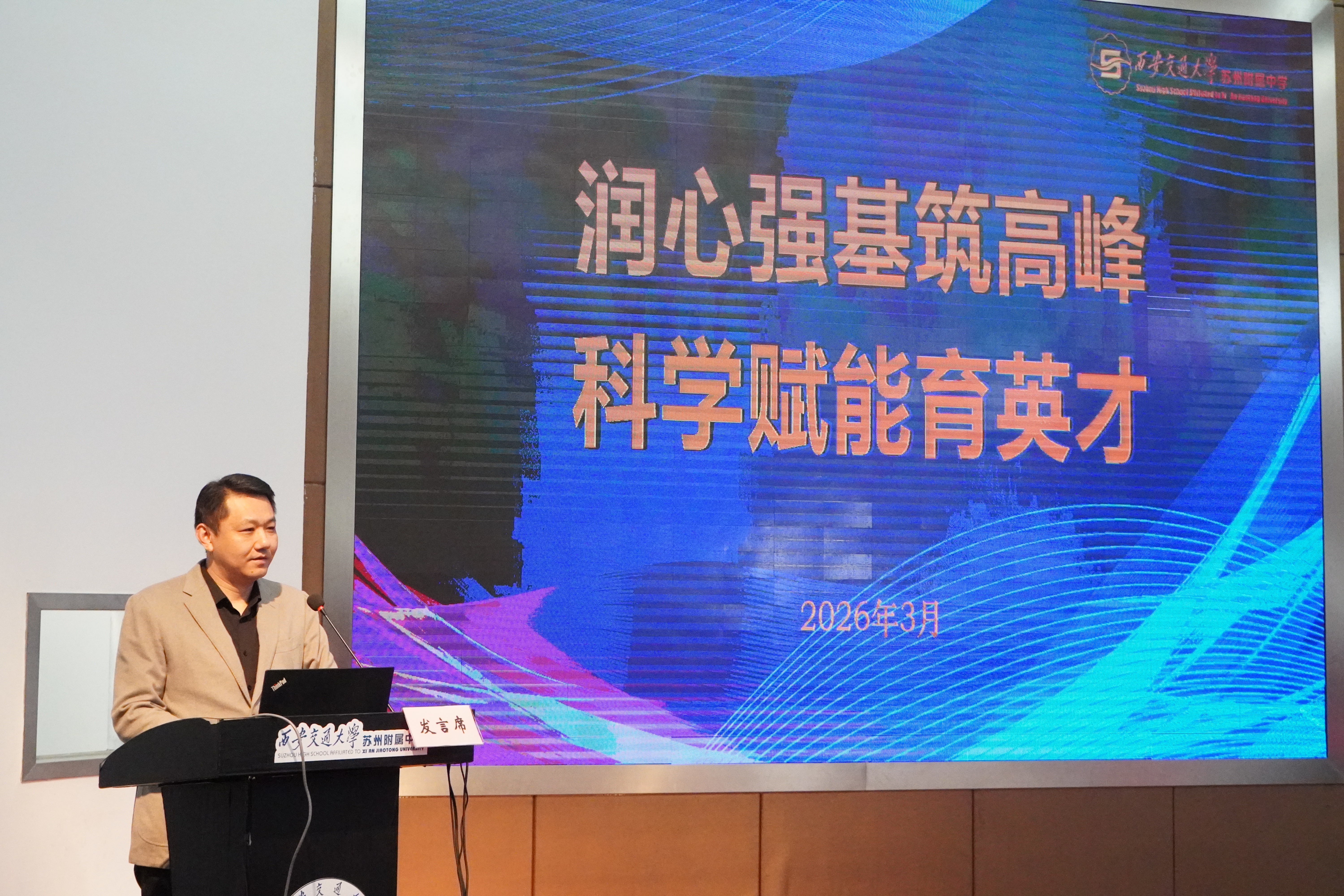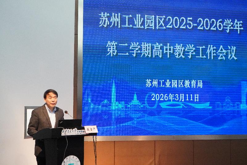 3月11日,2025-2026學年第二學期蘇州工業(yè)園區(qū)高中教學工作會議在西安交通大學蘇州附屬中學方洲路校區(qū)召開。會議圍繞“協(xié)同融合、新質(zhì)育人”年度主題,聚焦課程教學改革與育人模式創(chuàng)新,部署新學期重點工作,致力于推動區(qū)域高中教育向著更高質(zhì)量、更優(yōu)生態(tài)邁進。會議由園區(qū)教育局基礎教育處處長楊原明主持。