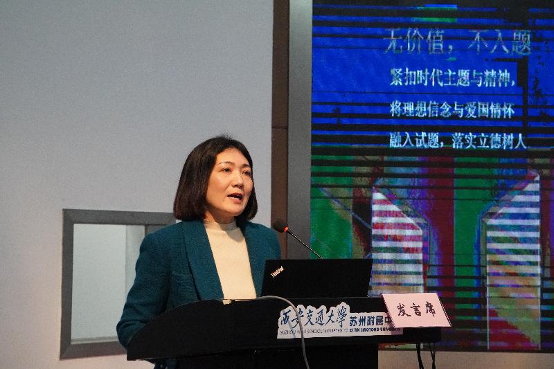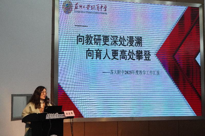 蘇州大學附屬中學教務處主任樊曉宇交流了“教學考評研”一體化探索的經(jīng)驗。她展示了學校“以賽促教”取得的優(yōu)異成績,并分享了“半塘書院”賦能教師專業(yè)成長、兩校區(qū)聯(lián)動深化集體備課、AI技術輔助新教師培養(yǎng)等一系列創(chuàng)新實踐,生動呈現(xiàn)了“一校兩區(qū)”優(yōu)勢互補、協(xié)同發(fā)展的新路徑。