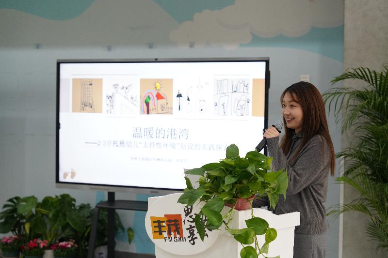 在本次托育專場活動中,來自四所幼兒園的托育教師立足實踐、聚焦成長,帶來深度專業分享。文苑路幼兒園教師傅清云以無界融合、游戲育人為核心,重構托班一日活動,讓環境與互動賦能幼兒自主探索;豐茂幼兒園教師許維維以回應性照護為抓手,聚焦幼兒真實需求,以細致觀察與溫情互動構建安全依戀關系;環州幼兒園教師章星藝以溫暖守護、環境育人為理念,從情感、秩序、感官等維度打造有溫度的托育空間,筑牢幼兒安全感;新馨幼兒園教師王靚以自然浸潤、漸進適應為路徑,依托家園協同與階梯式引導,助力幼兒平穩融入集體生活。
